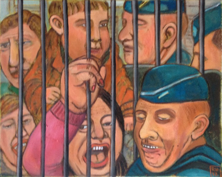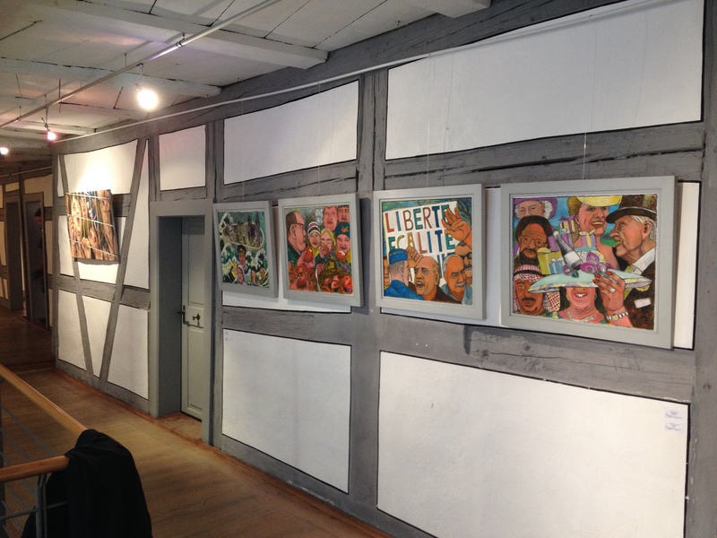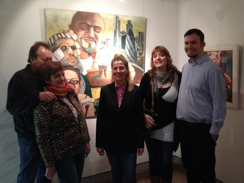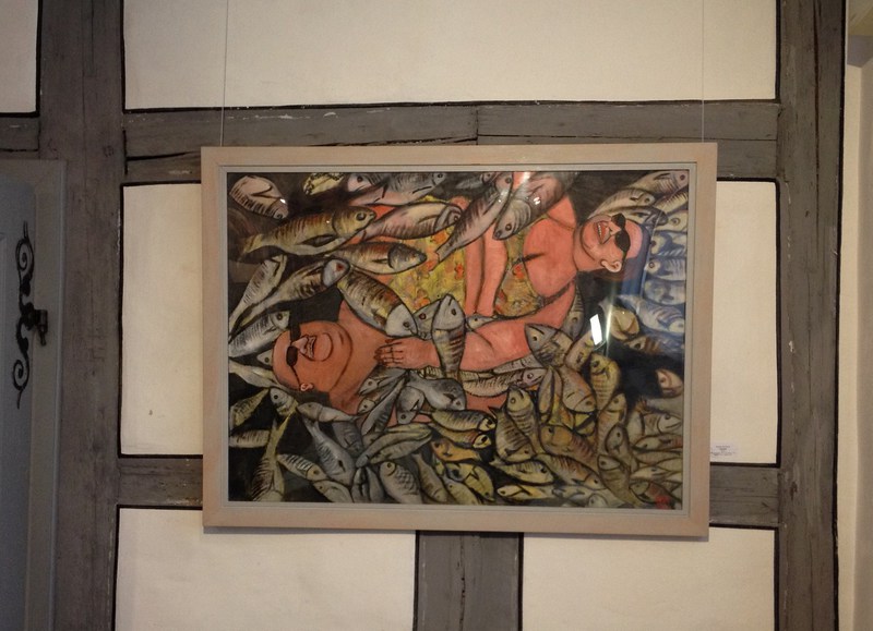 On entering the first floor of the Badhaus, one is confronted by the unusual colourful but also provocative paintings of Renate Hammond who, lives in Folkestone, less than a hundred kilometers from central London. "Room for Humour" is her creed and so the content of the oil paintings is partly of biting mockery. The artist was born in Auerbach (Oberpfalz), studied at the Academy of Fine Arts in Nuremberg and started in 1979 in Fürth her first gallery and subsequently worked as a freelance artist and gallery owner. She has been living in England since the year 2000.