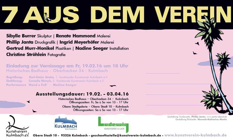 Kulmbach - In the exhibition series "7 from the association" members of the Art Society Kulmbach showing their art in the historic Badhaus and in the Oberen Stadtgalerie until April 3. "Aufgebrochen" is the theme of this year's exhibition and is a colourful and varied insight into the world of art.