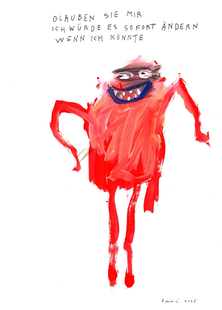 This work was presented by Georg Baier to John and Renate Hammond on the occasion of his participation in the group exhibition ACH MENSCH!, held at the Stadttheater Fürth, Bavaria, in 2025.