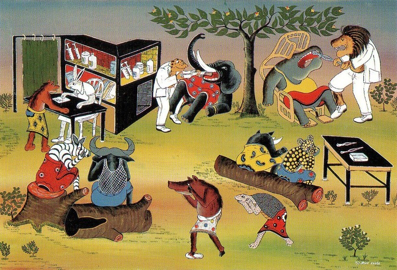 At the age of twenty years John Kilaka went to Dar es Salaam in order to make his talent into a career. He joined the painter's studio "Village Museum", which was founded in the seventies by Eduardo Saidi Tinga Tinga, the pioneer of modern African art, and started to exhibit his pictures. Since then John Kilaka is one of those artists who continued to develop a contemporary version of the legacy of early Tanzanian "square painting".
