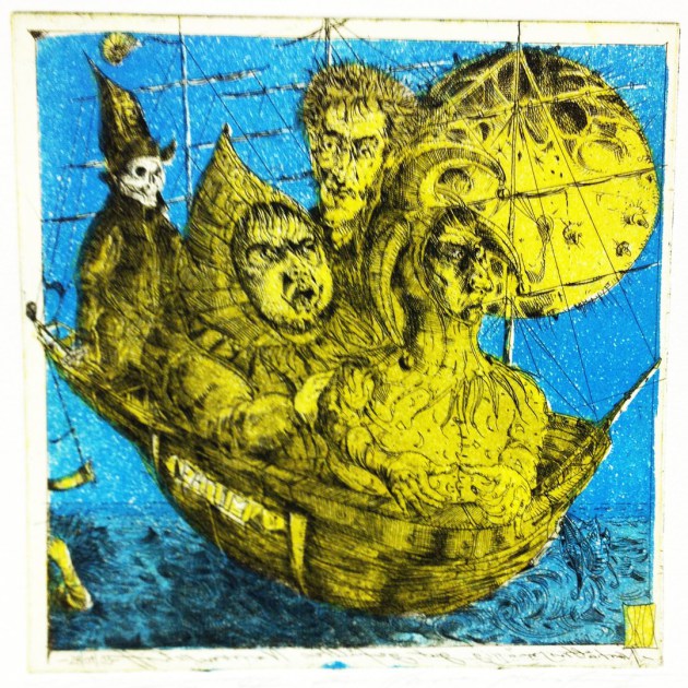 Stephan Klenner-Otto (b. 1959): NARRENSCHIFF (SHIP OF FOOLS), 2005, Coloured etching, Image 14 x 14 cm, Signed