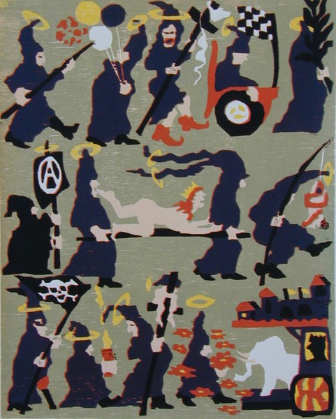 Hartmut Kuhnke (b. 1950): DER SCHWARZE KÖNIG REITET, 2002, Coloured woodcut, Image 15 x 11 cm, Sheet size 16 x 22,5 cm, Edition 28 of 39
