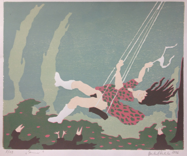 Hartmut Kuhnke (b. 1950): NICOL ANSOWNA, 2006, Coloured woodcut, Image 15 x 10,5 cm, Sheet size 16 x 22 cm, Edition 7 of 34