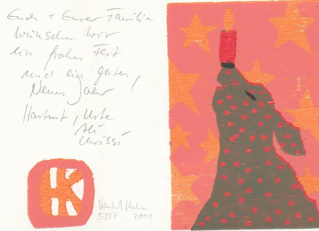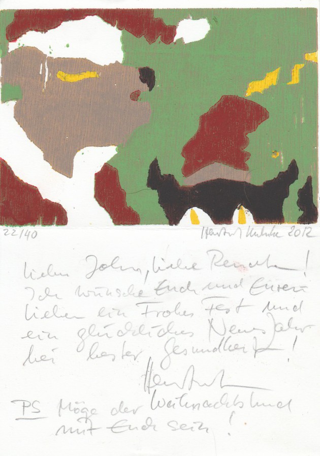 New Year greetings 2013 from Hartmut Kuhnke to J. & R. Hammond with inscription (Lieber John, liebe Renate! Ich wünsche Euch und Euren Lieben ein Frohes Fest und ein