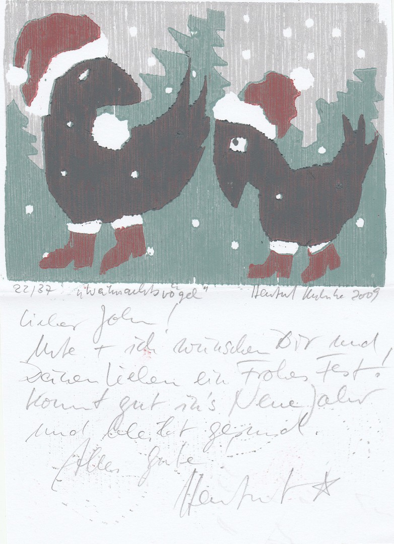New Year greetings 2010 from Hartmut Kuhnke to J. & R. Hammond with inscription (Lieber John! Urte + ich wünschen Dir und Deinen Lieben ein Frohes Fest! Kommt gut in's Neue Jahr und bleibt gesund. Alles Gute Hartmut)