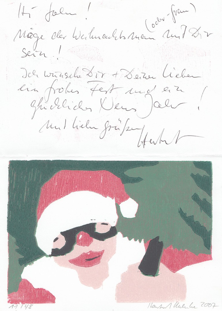 New Year greetings 2008 from Hartmut Kuhnke to J. & R. Hammond with inscription (Hi John! Möge der Weihnachtsmann oder -frau mit Dir