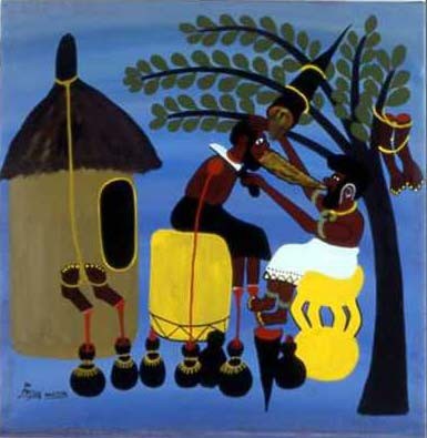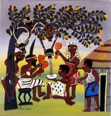 Peter Martin is, like John Kilaka with his affectionately naive stile, but also strongly naturalistic depictions of village life in the tradition of the Tinga-Tinga-painting of Tanzania, which is one of the most important art movements of the black continent.