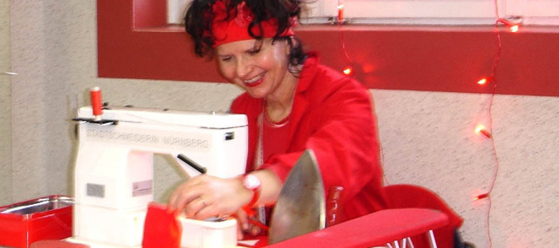 Christa Lösel called Wilhelmine (the red dress tailoress) was born in 1955 in Nuremberg and worked there as a teacher from 1978 to 1992.